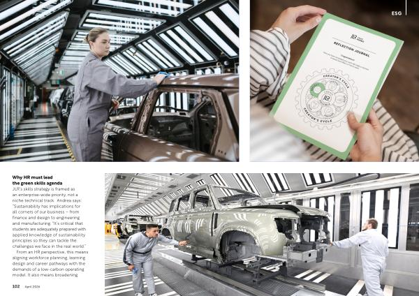 Why HR must lead the green skills agenda JLR’ s skills strategy is framed as an enterprise‐wide priority, not a niche technical track. Andrea says:“ Sustainability has implications for all corners of our business – from finance and design to engineering and manufacturing.“ It’ s critical that students are adequately prepared with applied knowledge of sustainability principles so they can tackle the challenges we face in the real world.”