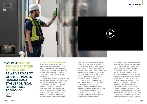 Canada’ s competitive advantages Canada’ s appeal as a data centre destination has been growing for years now.“ We’ re a strong trading partner to the world,” Taylor explains.“ Relative to a lot of other places, Canada has a relatively stable political climate and economy.”