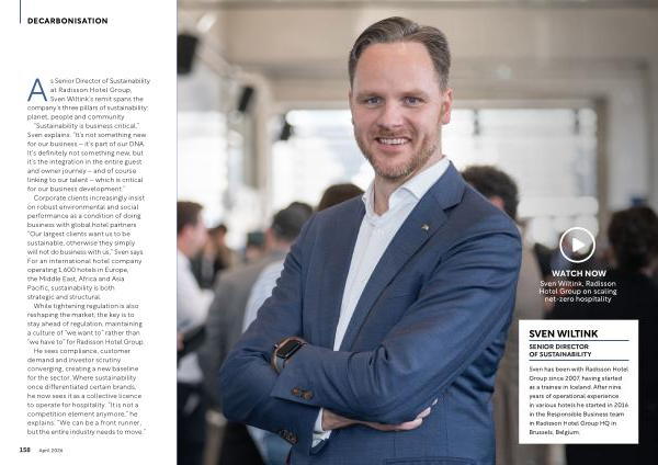 As Senior Director of Sustainability at Radisson Hotel Group, Sven Wiltink’ s remit spans the company’ s three pillars of sustainability: planet, people and community.