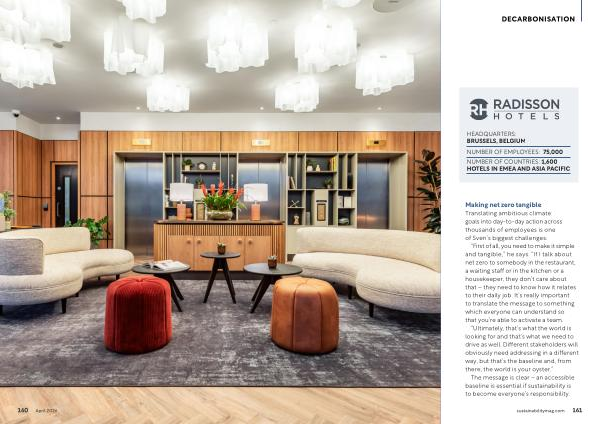 “ First of all, you need to make it simple and tangible,” he says.“ If I talk about net zero to somebody in the restaurant, a waiting staff or in the kitchen or a housekeeper, they don’ t care about that – they need to know how it relates to their daily job. It’ s really important to translate the message to something which everyone can understand so that you’ re able to activate a team.