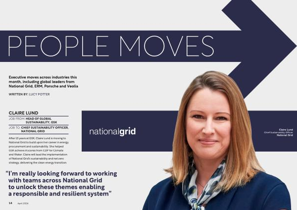 Executive moves across industries this month, including global leaders from National Grid, ERM, Porsche and Veolia