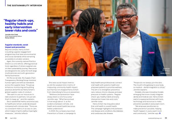 Supplier standards, social impact and prevention Beyond climate, Henry Schein is building supplier engagement programmes that raise environmental and social standards while remaining accessible to smaller vendors.