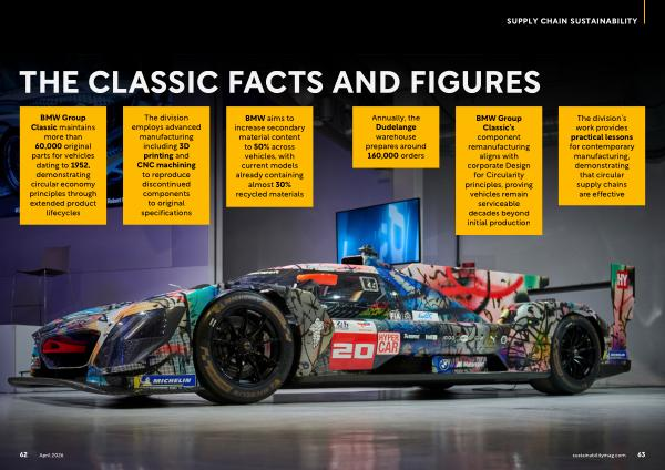BMW Group Classic maintains more than 60,000 original parts for vehicles dating to 1952, demonstrating circular economy principles through extended product lifecycles