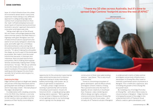 “ I have my 10 sites across Australia , but it ' s time to spread Edge Centres ' footprint across the rest of APAC ”