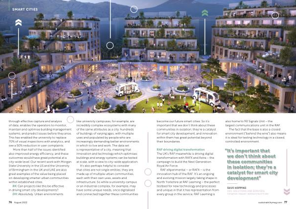 DH : Absolutely . Urban environments like university campuses , for example , are incredibly complex ecosystems with many of the same attributes as a city : hundreds of buildings of varying ages , with multiple uses and populated by people who are increasingly demanding better environments in which to live and work . The data set is representative of a city , meaning that innovation and technology which optimises buildings and energy systems can be tested at scale , with a view to city-wide application .