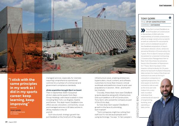 TONY QORRI VP CONSTRUCTION , DATABANK managed services , especially for clientele requiring comprehensive operational controls for a number of commercial and government compliance standards .