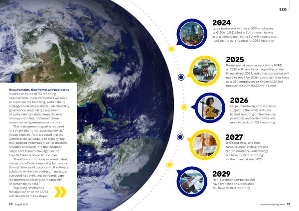 Regarding timeframes , the application of the CSRD will take place in five stages :