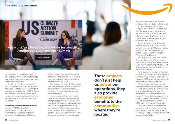Hurst recognises that more needs to be done in order to combat climate change globally and is continuing work to solidify this mission and make Amazon one of the leading companies in netzero strategy . Whilst it is already on the 2040 pathway , Hurst is also keen to continue driving the company ’ s circular economy , recycling work , sustainable