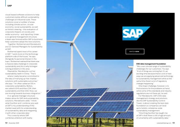 A co-general manager structure makes sense for SAP and sustainability solutions , Mendelsohn adds : “ I think what Gunther and I combine very well at SAP is my understanding of the market need with his understanding of sustainability data and integrating it with other corporate data .”