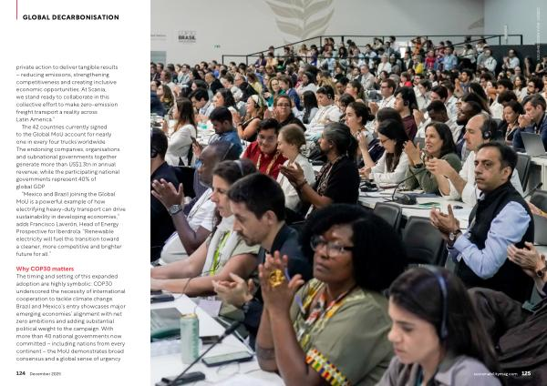 private action to deliver tangible results – reducing emissions, strengthening competitiveness and creating inclusive economic opportunities. At Scania, we stand ready to collaborate in this collective effort to make zero-emission freight transport a reality across Latin America.”