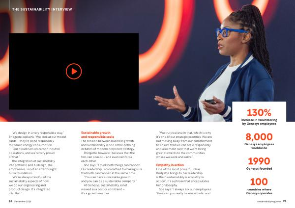 At Genesys, sustainability is not viewed as a cost or constraint – it’ s a growth enabler.