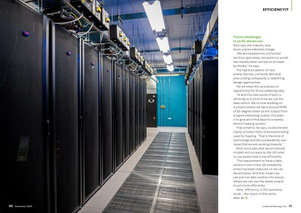 Yet he views this as a phase of opportunity for those adapting early.“ AI and this new world of tech is allowing us to pivot how we use the data centre. We’ re now working on a project where we have around 5MW of 55-degree water as the output from a supercomputing cluster. Our plan is to give all of that back to a nearby district heating system.”