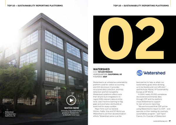 TOP 10 – SUSTAINABILITY REPORTING PLATFORMS Watershed Headquarters California, US