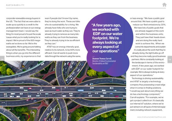 38 corporate renewable energy buyers in the US . “ The fact that we were able to scale up so quickly is a credit to the professionalism we have on our energy management team . I would say the thing I ’ m most proud of is just the scale ’ cause what you ’ re really looking for is impact . We ’ re proud of the 820 megawatts we ’ ve done so far . We ’ re the evangelists . We ’ re going around talking about all the benefits . The interesting thing is when you go into the different business units , my experience is that even if people don ’ t know it by name , they ’ re doing the work . These are folks who do sustainability for a living . We already have folks who are trying to save as much water as they can . They ’ re already trying to remove as many kilowatts as they can from the business . They ’ re already trying to be as efficient as they can .”