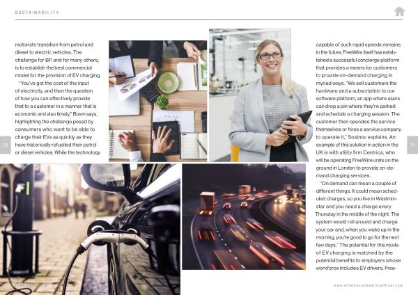 “ On demand can mean a couple of different things . It could mean scheduled charges , so you live in Westminster and you need a charge every Thursday in the middle of the night . The system would roll around and charge your car and , when you wake up in the morning , you ’ re good to go for the next few days .” The potential for this mode of EV charging is matched by the potential benefits to employers whose workforce includes EV drivers . Free-