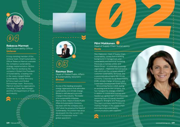 A long-standing member of the Unilever team , Chief Sustainability Officer Rebecca Marmot oversees the company ’ s sustainability strategy implementation . Before 2019 , Marmot worked as the company ’ s Global Vice President of Sustainability ; a leading role in the newly merged Global Sustainability , Global Advocacy & Policy team and Global Partnerships team . Previously , Marmot worked for organisations including L ’ Oreal , Bell Pottinger , and the UK Department of Trade and Industry .