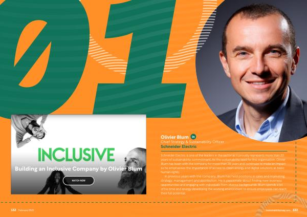 Schneider Electric is one of the leaders in the sector as it proudly represents more than 20 years of sustainability commitment . As the sustainability lead for the organisation , Olivier Blum has been with the company for more than 28 years and continues to make an impact as he emphasises the importance of access to clean energy and digital solutions as basic human rights .