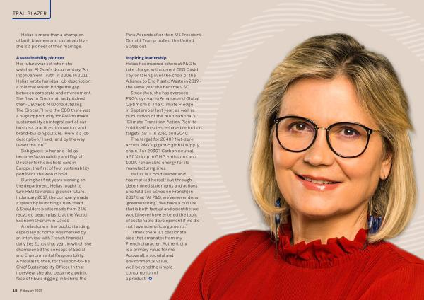 Helias is a bold leader and has marked herself out through determined statements and actions . She told Les Echos ( in French ) in 2017 that “ At P & G , we ’ ve never done ‘ greenwashing ’. We have a culture that is both factual and scientific : we would never have entered the topic of sustainable development if we did not have scientific arguments .”