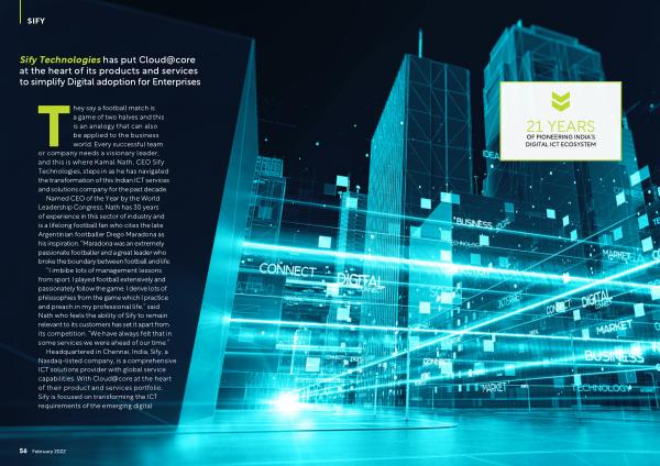 Sify Technologies has put Cloud @ core at the heart of its products and services to simplify Digital adoption for Enterprises
