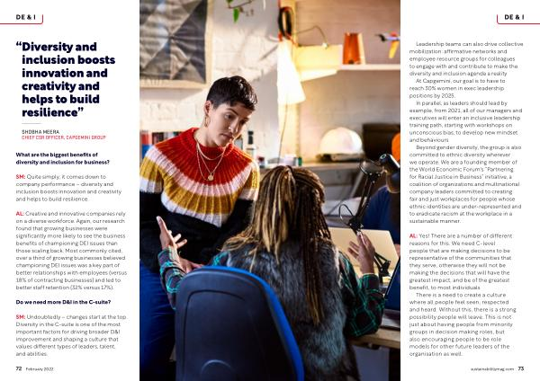 There is a need to create a culture where all people feel seen , respected and heard . Without this , there is a strong possibility people will leave . This is not just about having people from minority groups in decision making roles , but also encouraging people to be role models for other future leaders of the organisation as well . sustainabilitymag . com 73