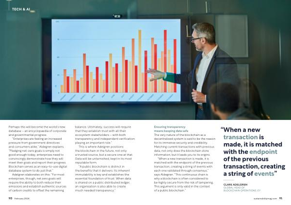 “ Enterprises are feeling an increased pressure from government directives and consumers alike ,” Aldegren explains . “ Pledging net-zero goals is simply not good enough today , enterprises need to convincingly demonstrate how they will meet their goals and report their progress . Blockchain serves as an easy-to-use digital database system to do just that .”