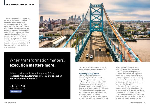 “ Large transformation programmes can generate lots of competing priorities, shifting requirements and different levels of technical understanding,” he notes.“ The first step is simplifying the narrative and making sure people are seeing the same picture.” A significant element of transformation management involves translation – in other words, helping business leaders understand technical trade-offs and implications, while helping technical teams grasp business risk, timing and constraints. 108 February 2026