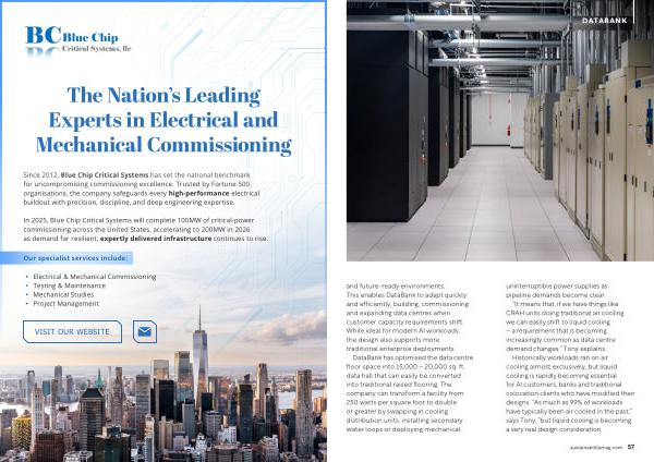 DATABANK and future-ready environments. This enables DataBank to adapt quickly and efficiently, building, commissioning and expanding data centres when customer capacity requirements shift. While ideal for modern AI workloads, the design also supports more traditional enterprise deployments.