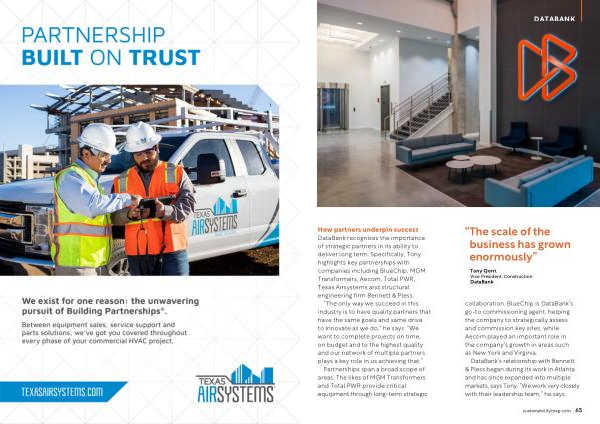 collaboration. BlueChip is DataBank’ s go-to commissioning agent, helping the company to strategically assess and commission key sites, while Aecom played an important role in the company’ s growth in areas such as New York and Virginia.