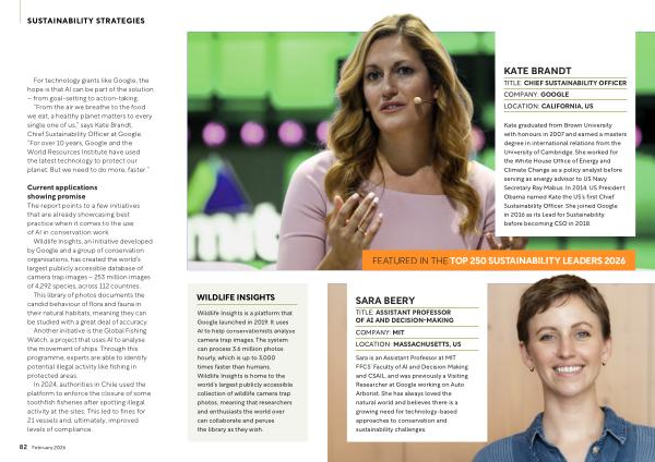 Wildlife Insights is a platform that Google launched in 2019. It uses AI to help conservationists analyse camera trap images. The system can process 3.6 million photos hourly, which is up to 3,000 times faster than humans. Wildlife Insights is home to the world’ s largest publicly accessible collection of wildlife camera trap photos, meaning that researchers and enthusiasts the world over can collaborate and peruse the library as they wish.