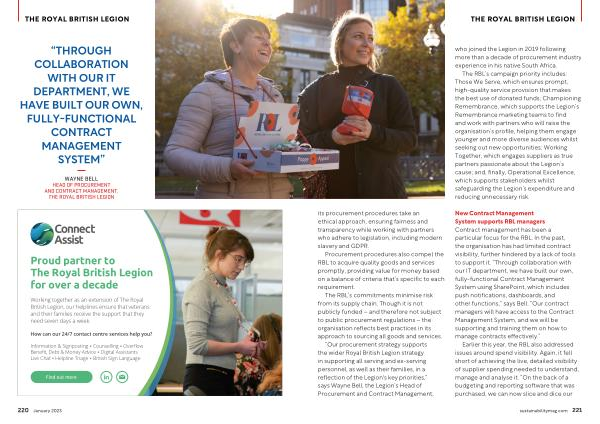 “ Our procurement strategy supports the wider Royal British Legion strategy in supporting all serving and ex-serving personnel , as well as their families , in a reflection of the Legion ' s key priorities ,” says Wayne Bell , the Legion ’ s Head of Procurement and Contract Management ,
