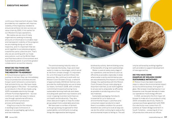 The entire brewing industry relies on raw materials like barley , hops and clean water to make our beverages , which are all at risk from climate change . It ’ s important for us to find ways to protect these vital resources . We continue to work with our Molson Coors Growers Group , a network of approximately 140 British farmers who provide the malting barley we use to brew our beers , formed in 2008 , with a shared commitment toward achieving more sustainable farming methods and ideas , including well-planned crop rotations and cover cropping to protect and improve soil health and biodiversity . They also share data and insights to help the wider group adopt more sustainable practices .