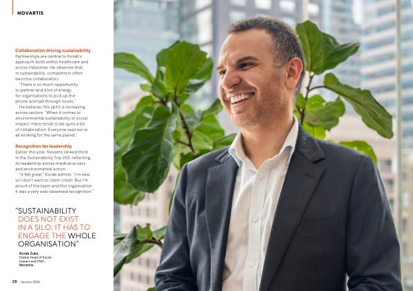 Recognition for leadership Earlier this year, Novartis ranked third in the Sustainability Top 250, reflecting its leadership across medical access and environmental action.