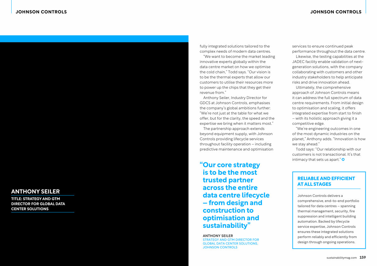 ANTHONY SEILER STRATEGY AND GTM DIRECTOR FOR GLOBAL DATA CENTER SOLUTIONS, JOHNSON CONTROLS services to ensure continued peak performance throughout the data centre.