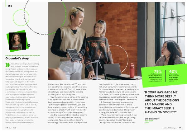 “ B CORP HAS MADE ME THINK MORE DEEPLY ABOUT THE DECISIONS I AM MAKING AND THE IMPACT SEEP IS HAVING ON SOCIETY ”