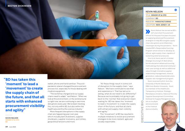 KEVIN NELSON SENIOR VP & CPO , BD wallet , phone and hand sanitiser . The postpandemic planet changed the procurement process too , especially for those dealing with medical equipment .