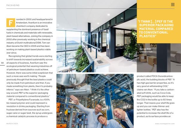 Recognising that global trends were starting to shift towards increased sustainability across all aspects of business , Avantium saw the ecological potential that weaning industries off of petroleum-based plastics could achieve . However , there was some initial scepticism that such a move was worth making . “ People previously thought that the best plastics could only be made from petroleum and that , if you made something from plants , then it ’ s probably inferior ,” says van Aken . “ I think it ’ s the other way around : PEF is the superior packaging material compared to conventional plastics .”