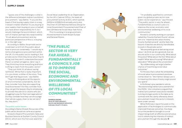 “ I ' m probably qualified to comment given my global private sector now public sector experience ,” says Knowd . “ The public sector is very far ahead … Fundamentally a council ' s job is to improve the social , economic and environmental wellbeing of its local communities .”