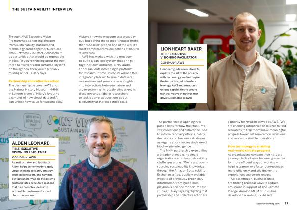 The NHM partnership exemplifies a broader principle: no single organisation can solve sustainability challenges alone.“ We’ re also opensourcing sustainability knowledge through the Amazon Sustainability Exchange, a free, publicly available website of previously proprietary information from guidelines, playbooks, science models, to case studies,” Hilary says, highlighting that partnership and collective action are a priority for Amazon as well as AWS.“ We are enabling companies of all sizes to find resources to help them make meaningful progress toward net zero carbon emissions and more sustainable operations.”
