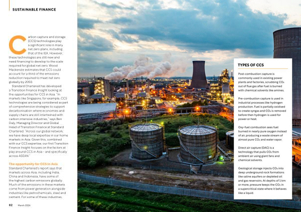 Standard Chartered has developed a Transition Finance Insight looking at the opportunities for CCS in Asia.“ In markets like Singapore, for example, CCS technologies are being considered as part of comprehensive strategies to support decarbonisation where economies and supply chains are still intertwined with carbon intensive industries,” says Ben Daly, Managing Director and Global Head of Transition Finance at Standard Chartered.“ Across our global network, we have deep local expertise in our home markets in Asia. Given this, combined with our CCS expertise, our first Transition Finance Insight focuses on the factors at play around CCS in Asia- and specifically across ASEAN.”