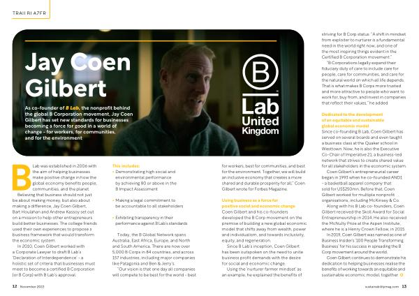 Coen Gilbert continues to demonstrate his dedication to helping businesses realise the benefits of working towards an equitable and sustainable economic model , together .