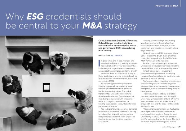 Consultants from Deloitte , KPMG and Roland Berger provide insights on how to handle environmental , social and governance ( ESG ) issues during M & A activity