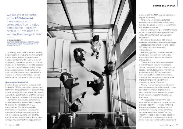“ We see great potential in the ESG-focused transformation of companies from a value perspective – already , certain PE investors are leading the change in this ”