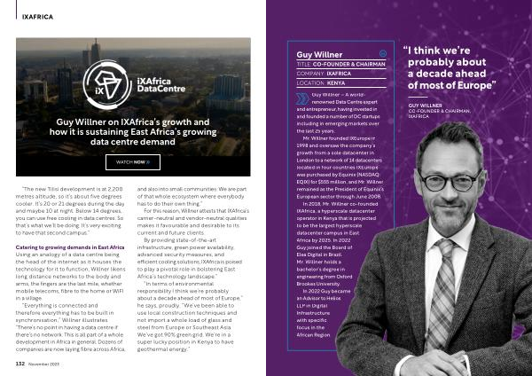 In 2018 , Mr . Willner co-founded IXAfrica , a hyperscale datacenter operator in Kenya that is projected to be the largest hyperscale datacenter campus in East Africa by 2025 . In 2022 Guy joined the Board of Elea Digital in Brazil . Mr . Willner holds a bachelor ’ s degree in engineering from Oxford Brookes University .