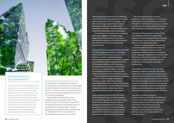 Sustainability Accounting Standard Board ( SASB ): The SASB strategically pinpoints sustainability matters pivotal to the financial operations in 77 distinct industries , establishing globally acknowledged standards that empower consistent and comparable sustainability disclosures . The FSA Credential offered by SASB intertwines two examinations to evaluate a professional ’ s proficiency in understanding the materiality of sustainability information relevant to both corporate performance and investment analysis .