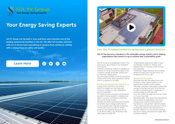 SOL PV has become a standout in the renewable energy industry and is helping organisations like Central Co-op to achieve their sustainability goals