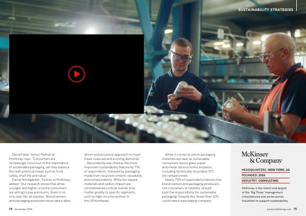 Daniel Nordigården, Partner at McKinsey, added:“ Our research shows that while younger and higher-income consumers are willing to pay premiums, there is no one-size-fits-all solution. Brand owners and packaging producers must take a data- driven and proactive approach to meet these nuanced and evolving demands.” Recyclability was cited as the most important sustainability feature by 77 % of respondents, followed by packaging made from recycled content, reusability and compostability. While bio-based materials and carbon impact are considered less critical overall, they matter greatly to specific segments, such as high-income women in the US Northeast.
