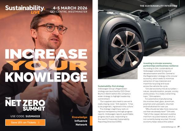 Investing in circular economy, partnerships and business resilience According to Dirk, sustainability at Volkswagen extends far beyond decarbonisation and EVs. Central to the Regenerate + strategy is the circular economy, which seeks to minimise extraction of new materials and maximise recycling and reuse across the vehicle life-cycle.