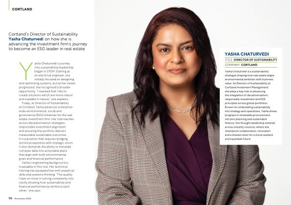 Cortland’ s Director of Sustainability Yasha Chaturvedi on how she is advancing the investment firm’ s journey to become an ESG leader in real estate
