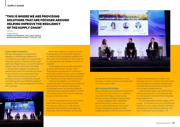 SAP working with EcoVadis Rayan talks about a crowdsourced approach to sharing this information in a consistent way , and technology is crucial to that process and the success of supply chains .