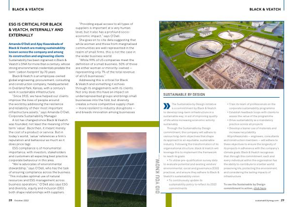 Amanda O ’ Dell and Ajay Kasarabada of Black & Veatch are making sustainability known across the company and among its construction and engineering clients Sustainability has been ingrained in Black & Veatch ’ s DNA for more than a century , whose strong environmental credentials predate the term ‘ carbon footprint ’ by 70 years .